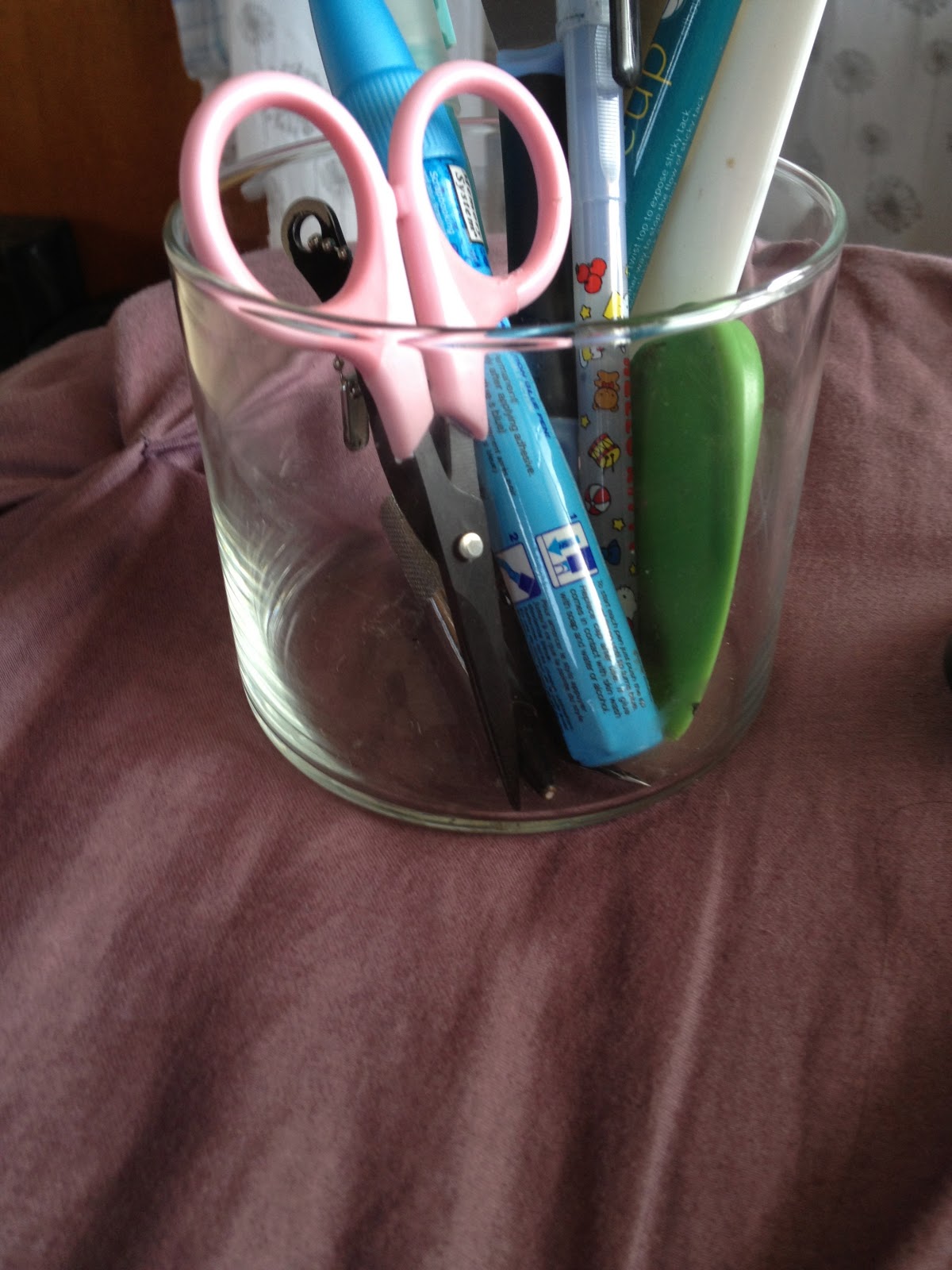 I used my jar for my bracelets, q-tips, flowers and I had some small candle jars that I used for rubber bands. It looks really nice.